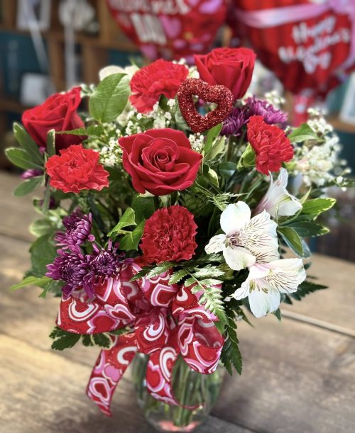 A basket filled with fragrent stargazer lilies. Accented with snapdragons, waxflower, spray roses and feathery plumosa. Bold, beautiful and sure to make a statement.